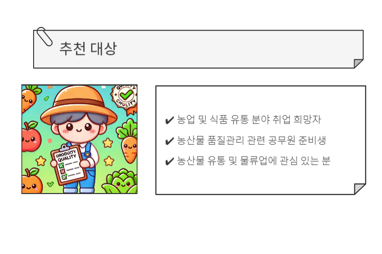 📌 농산물 표준규격 및 품질 평가 방법을 정확히 이해하고, 실무 적용 능력을 키우는 것이 중요!