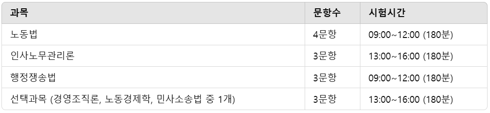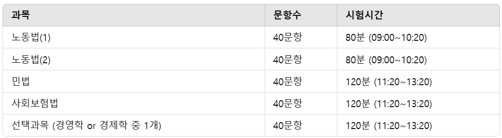 2. 공인노무사 시험 과목 및 배점