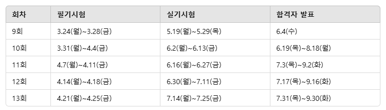 | 정보처리기사 시험 일정, 응시 자격, 합격률 (0) | 2025.04.22 |