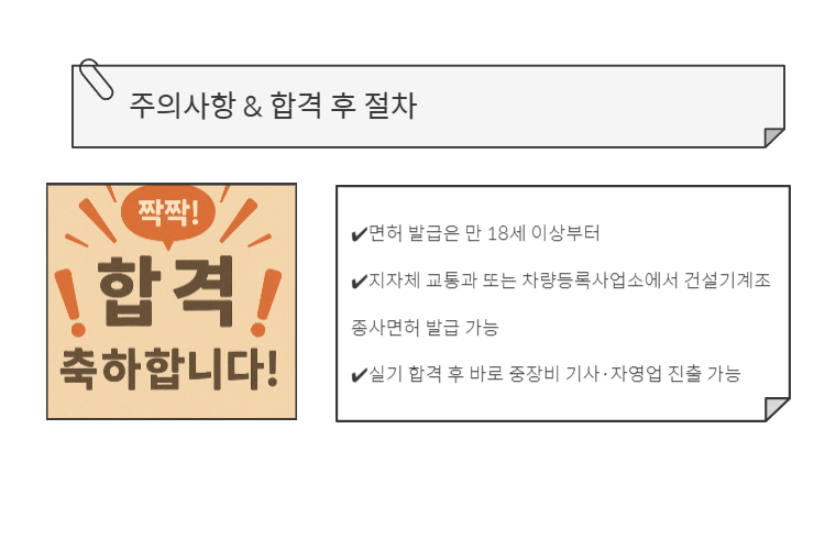 - 실기 합격 후 바로 중장비 기사·자영업 진출 가능