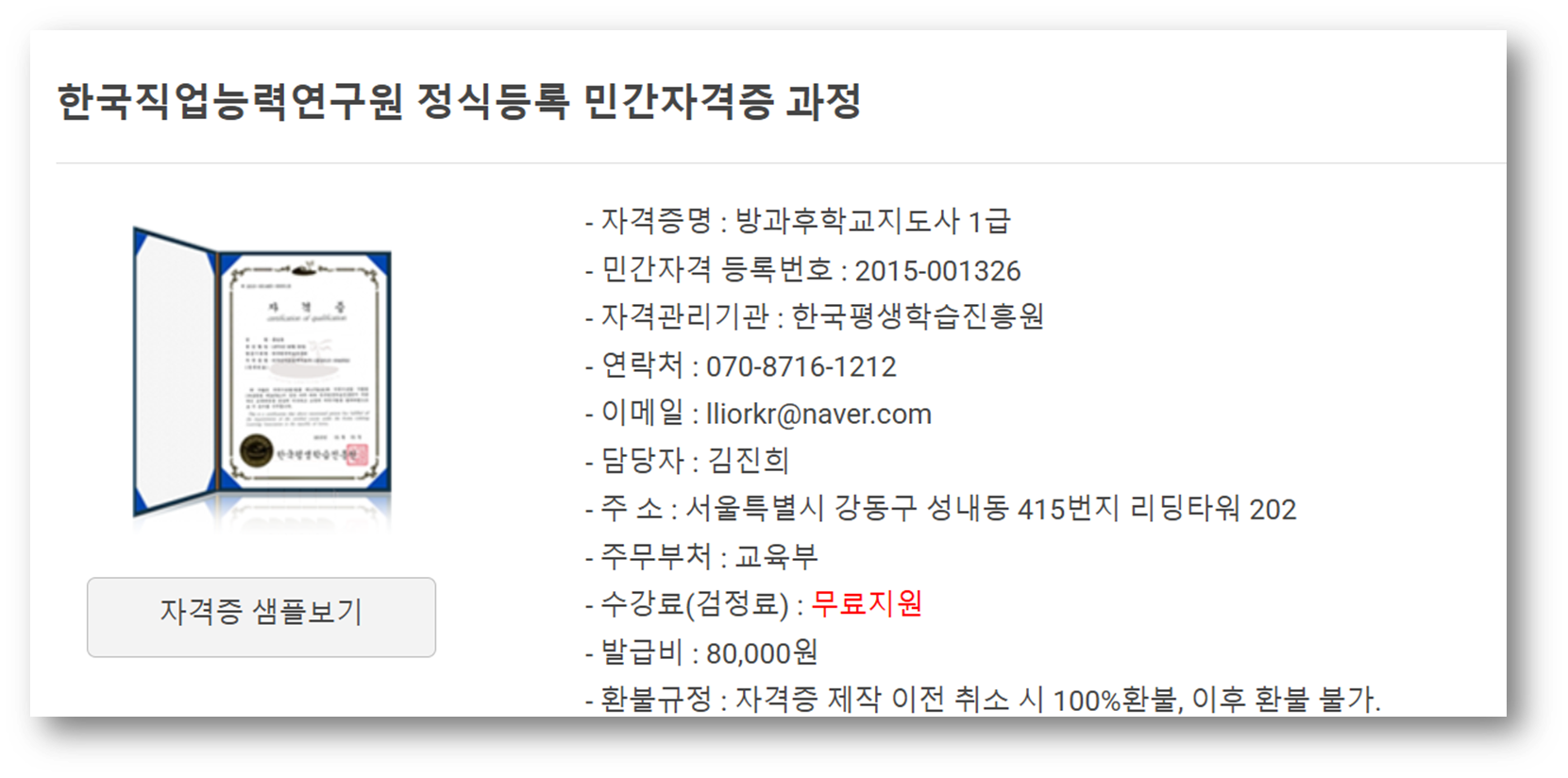 이 자격증을 통해 방과후 강사로 활동하거나 교육 관련 취업에 활용할 수 있습니다.