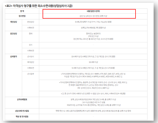 - 종류: 상담심리사 1급, 상담심리사 2급