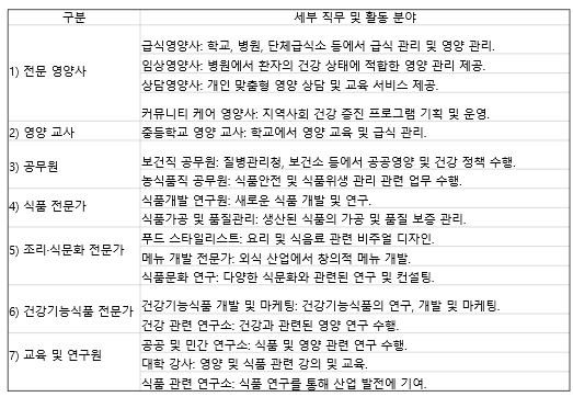 전통적인 급식 관리 외에도 다양한 분야에서 진출 가능성이 높으니 다방면으로 진로를 알아보세요.