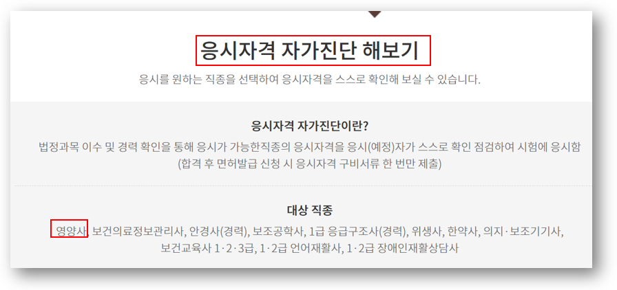 응시자격이 헷갈리시다면, 한국보건의료인국가시험원에서 자가 진단을 할 수 있습니다.