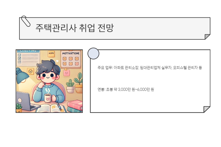 - 주요 업무: 아파트 관리소장, 임대관리업체 실무자, 오피스텔 관리자 등