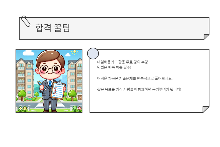 - 어려운 과목은 기출문제를 반복적으로 풀어보세요.