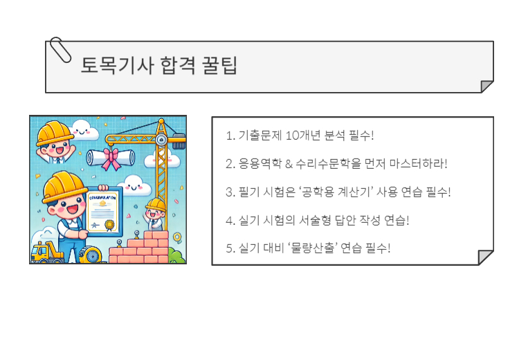 토목기사 자격증 취득을 준비하는 모든 분들, 합격을 기원합니다!