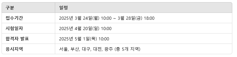 ✔ 시험 날짜: 2025년 4월 20일(일) 오전 10시
