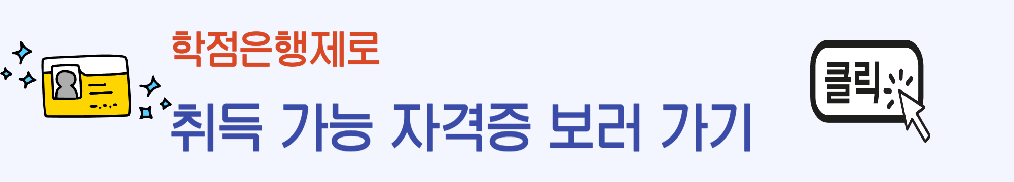 따라서 전공을 하지 않았더라도, 학점은행제를 통해 학위를 취득한 후 원하는 자격 요건을 취득하여, 제 2의 진로를 생각하시는 분들께 좋은 기회를 제공하는 제도라 할 수 있어요.