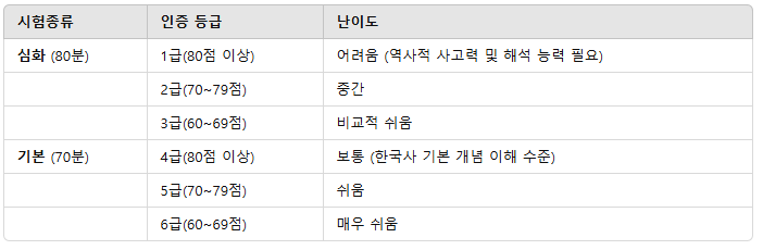 ✅ 기본 시험은 기존 초급보다 난이도가 올라가, 중학교 역사 수준 정도의 이해가 필요합니다.