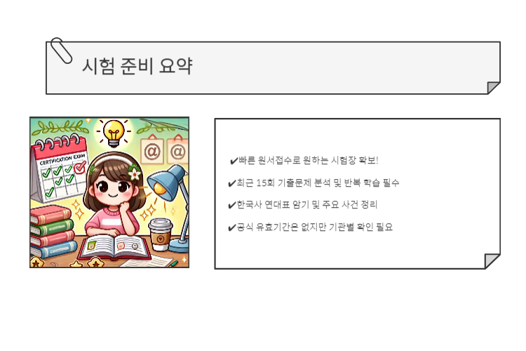 ✅ 한능검은 연도별 주요 사건을 묻는 문제가 많으므로, 한국사 연대표를 활용한 연도 암기가 필수입니다.