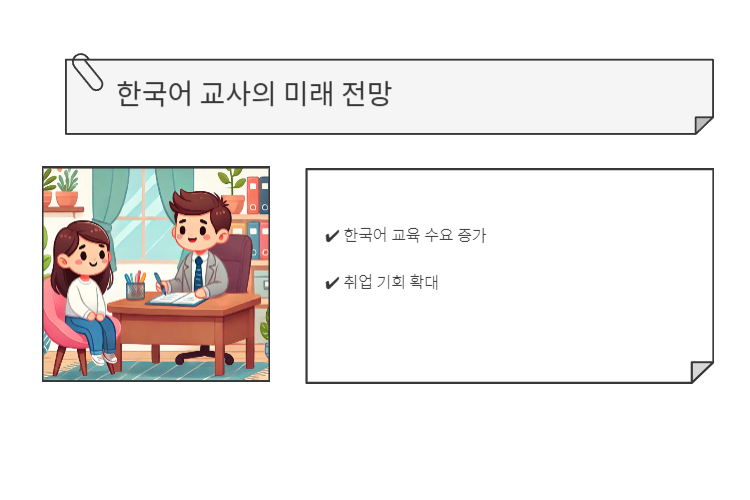 💡 한국어 교사는 앞으로도 전망이 밝고, 해외 취업 기회도 많기 때문에 적극 추천하는 자격증입니다!