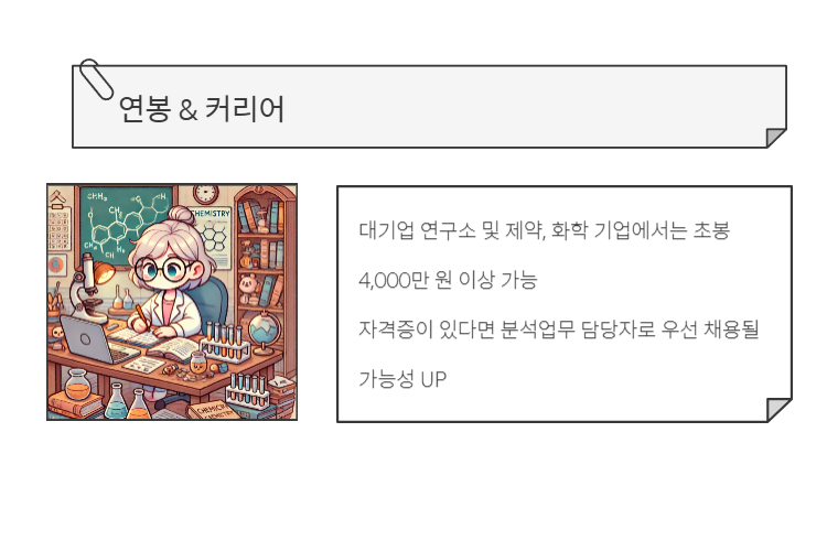 - 대기업 연구소 및 제약, 화학 기업에서는 초봉 4,000만 원 이상 가능