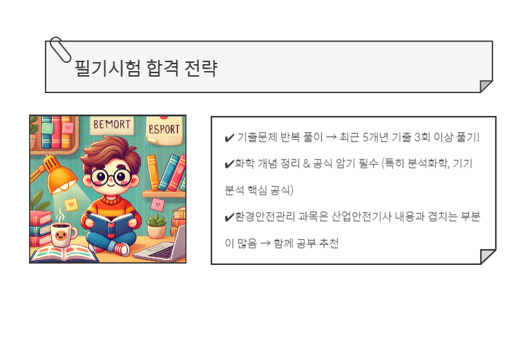 ✅ 환경안전관리 과목은 산업안전기사 내용과 겹치는 부분이 많음 → 함께 공부 추천