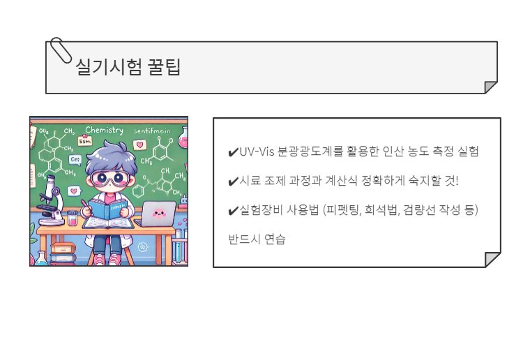 - 실기 합격률이 낮은 이유 → 실험 과정에서 작은 실수도 감점 요소