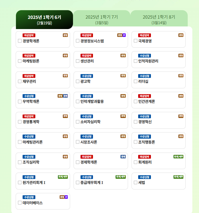 • 경영학 과목: 6학점 이상