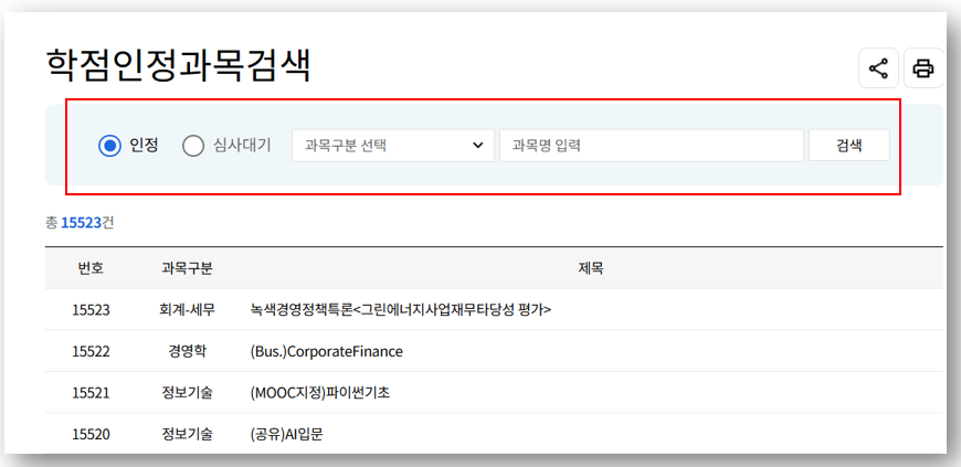 - 국가평생교육진흥원에 학점 등록 및 인정 요청
